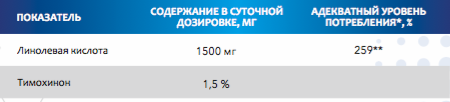 Масло Черного тмина включает в себя множество активных компонентов:Тимохинон - ключевой компонент: антиоксидант и противовоспалительный препарат, который также обладает антиканцерогенными свойствами.