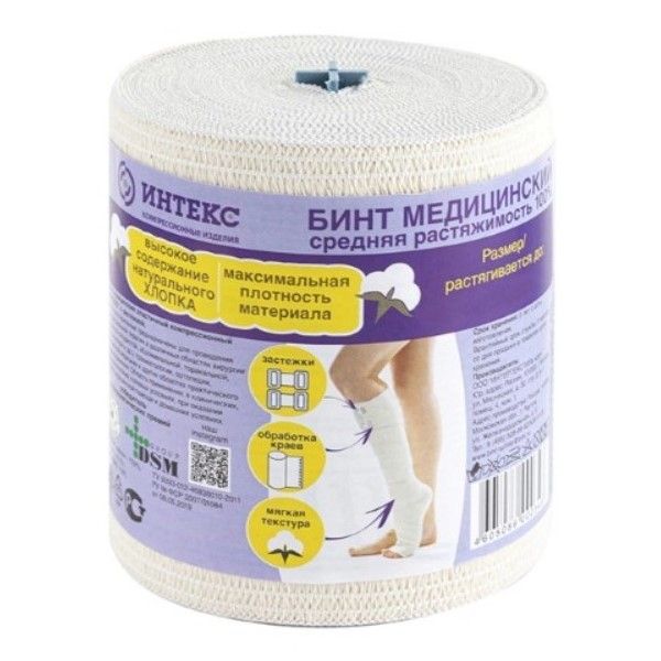 Эластичные бинты ИНТЕКС средней растяжимости хорошо растягиваются, устойчивы к деформациям и многократному растяжению, не сползают и надежно фиксируются на теле с помощью застёжек. В состав изделий входят хлопок, латекс, полиэфирные волокна.