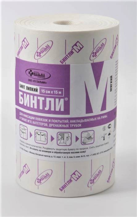 БИНТЛИ-М очень мягкий гипоаллергенный фиксирующий липкий бинт, обладает большой степенью драпируемости, что делает его очень удобным для фиксации повязок на поверхностях со сложным рельефом, локтевых, коленных суставах и т.п