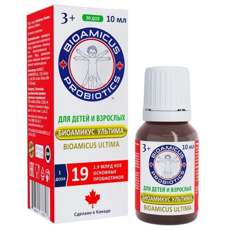 Пробиотик БиоАмикус Ультима для детей с 3-х лет и взрослых представляют собой сбалансированный комплекс из 19 штаммов лакто- и бифидобактерий естественных для ЖКТ человека.