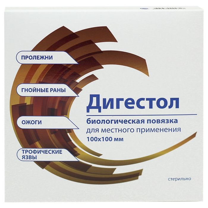 Дигестол назначают в I фазу раневого процесса в качестве некролитического и противовоспалительного средства, способствующего очищению раны. С соблюдением правил асептики вскрывают пакет с «Биологической повязкой Дигестол нужного размера, обрезают края по форме раны и накладывают на раневую поверхность, при наличии раневой полости ее рыхло тампонируют. Поверх накладывают стерильную марлевую салфетку и фиксируют обычным способом (бинтом, пластырем и пр.). Первую перевязку обычно производят на следующие сутки. В дальнейшем смену повязки производят по мере рассасывания губки. Местное лечение ран (язв, ожогов и пр.) Дигестолом проводят в сочетании с другими необходимыми средствами общей и местной терапии.Наличие и цена товара в аптеках