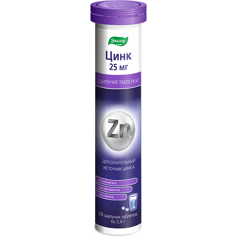 Шипучие таблетки Цинк 25 мг от компании Эвалар – это мощная дозировка минерала в 1 таблетке.