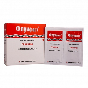 Активное вещество: карбоцистеин (в форме моногидрата лизиновой соли) 2.7 г.