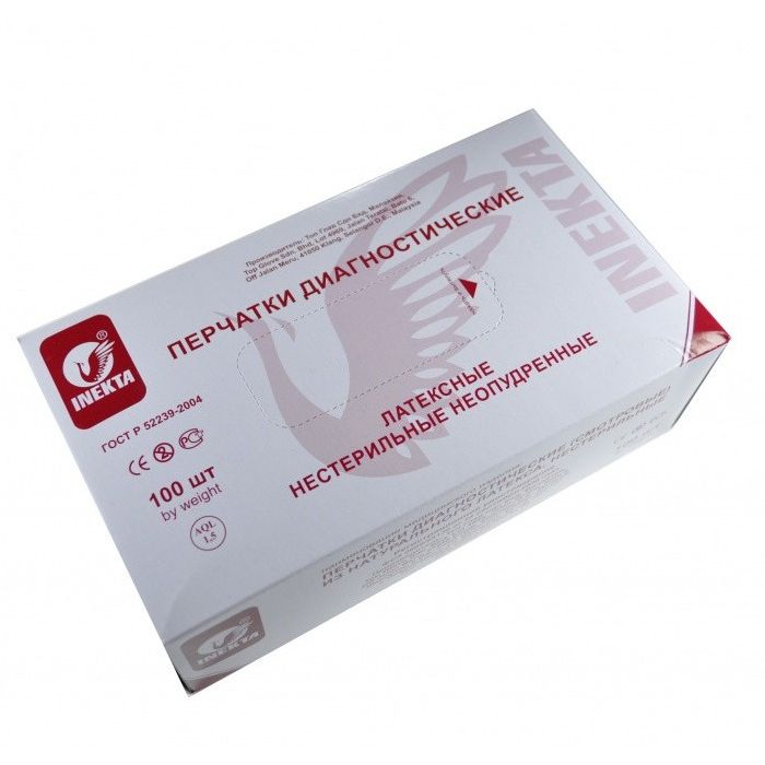 - Inekta Перчатки диагностические латексные нестерильные неопудренные р S N100 белый
