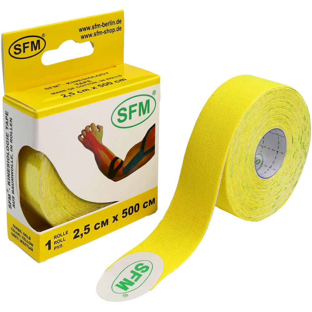 - Кинезио тейп SFM-Plaster на хлопковой основе 2.5х500см желтый