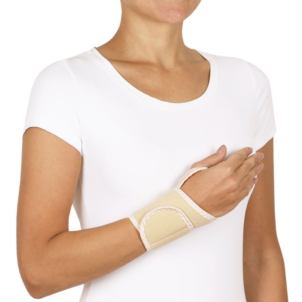 - Разъемная конструкция с вырезом для фиксации большого пальца и лентой Velcro обеспечивает индивидуальную настройку обхвата запястья, позволяет легко надевать и снимать бандаж без посторонней помощи