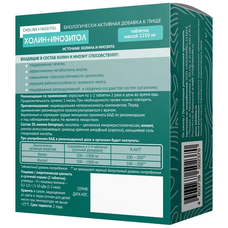 Lekolike Холин + Инозитол таблетки 1250мг N60