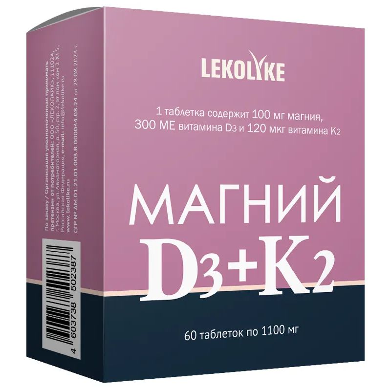 Lekolike Магний D3 + K2 таблетки 1100мг N60