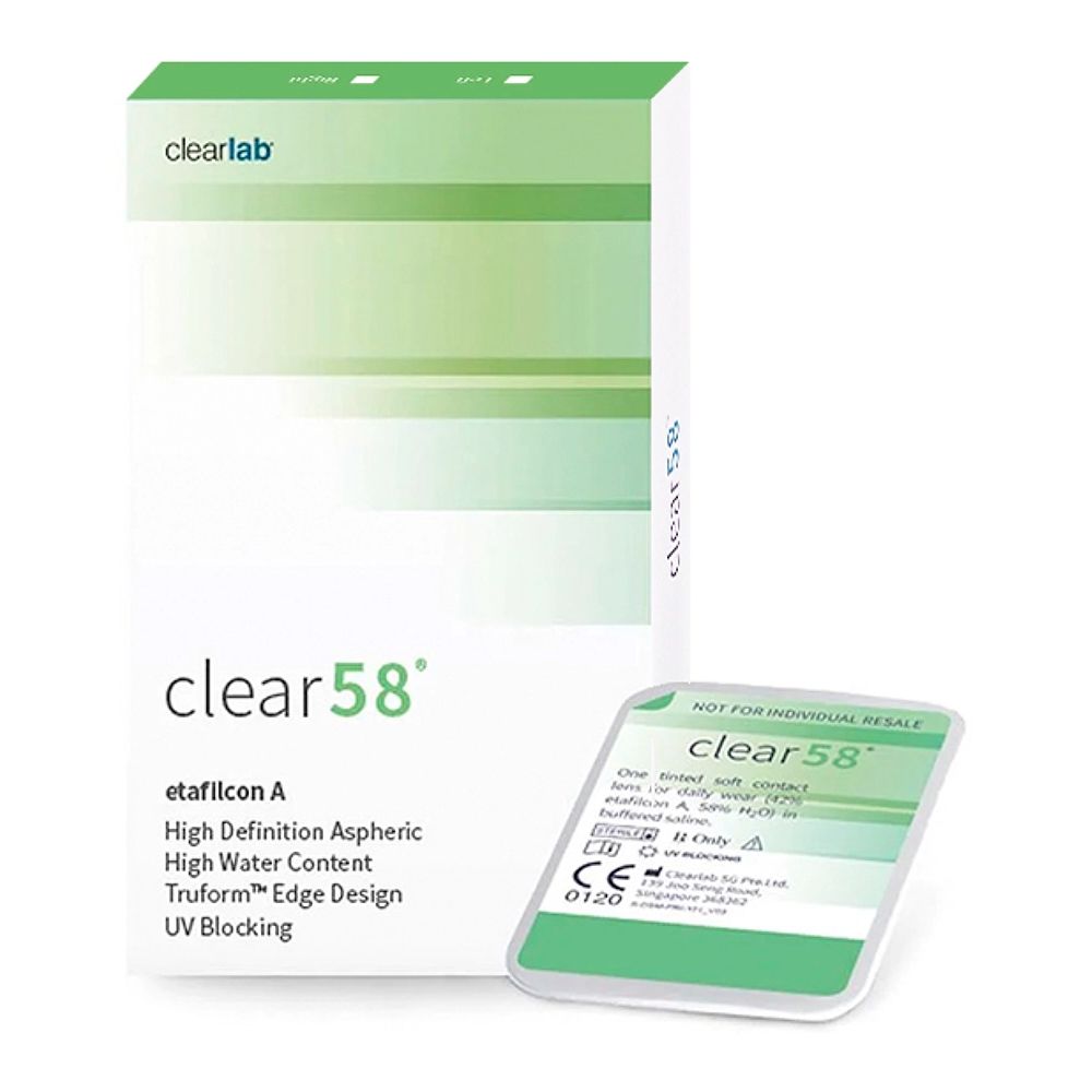 Продвинутый дизайн, а также слабая окраска линз Clear 58 позволяют носить их как опытным пользователям, так и совсем новичкам. Благодаря тонкому профилю и защищенной патентами технологии Truform контактные линзы Clear 58 обеспечивают комфорт на протяжении всего периода ношения. Отличная кислородная проницаемость вкупе с высоким содержанием влаги позволяют носить эти линзы в дневном режиме в течение целого месяца. При этом ваши глаза не будут уставать. Ультрафиолетовый фильтр, которым снабжены Clear 58, защитит глаза от вредного естественного излучения. контактные линзы