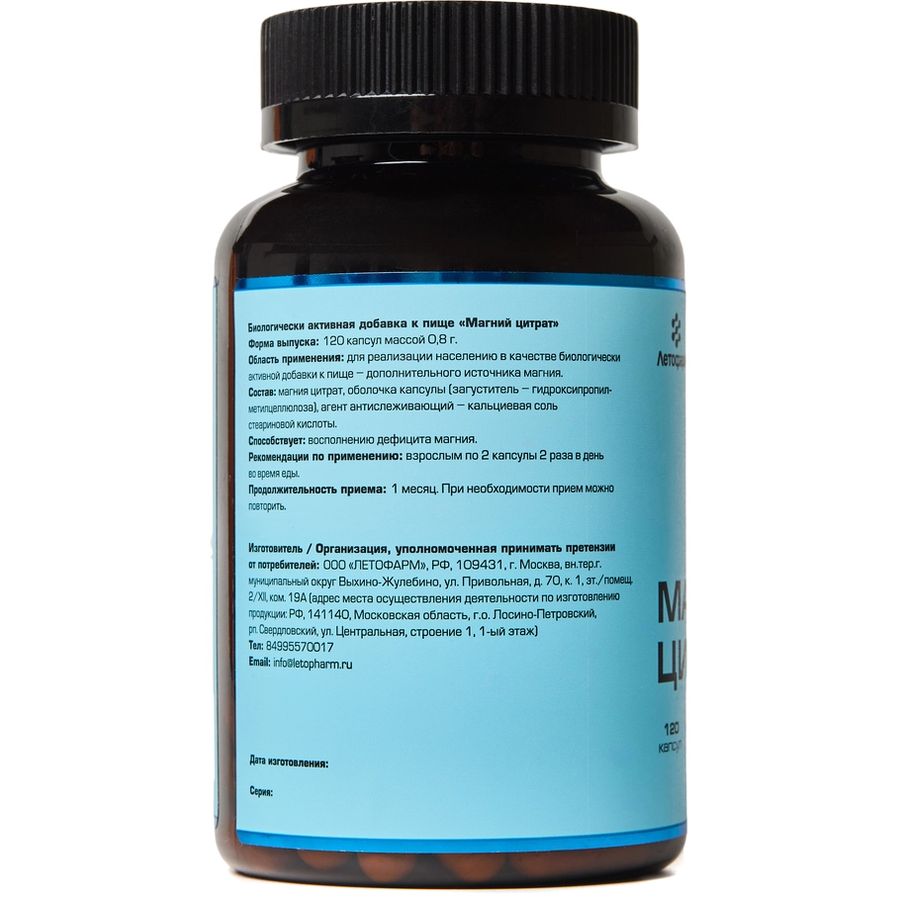 Магний цитрат капсулы 0,8г N120 ЛетоФарм