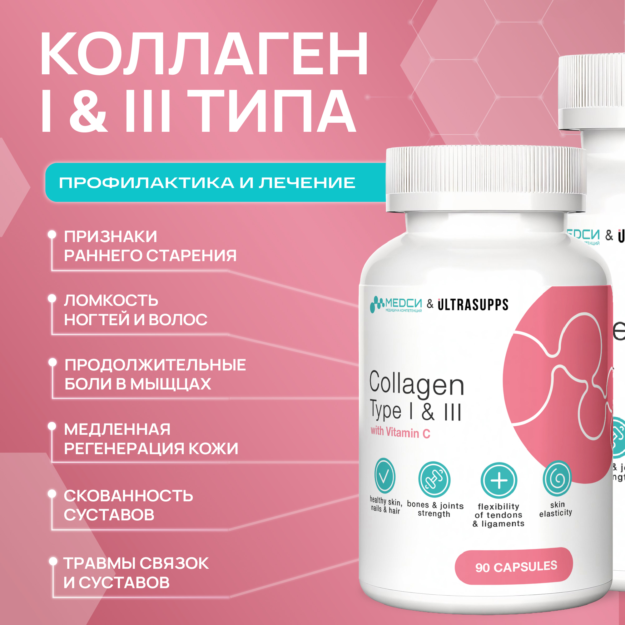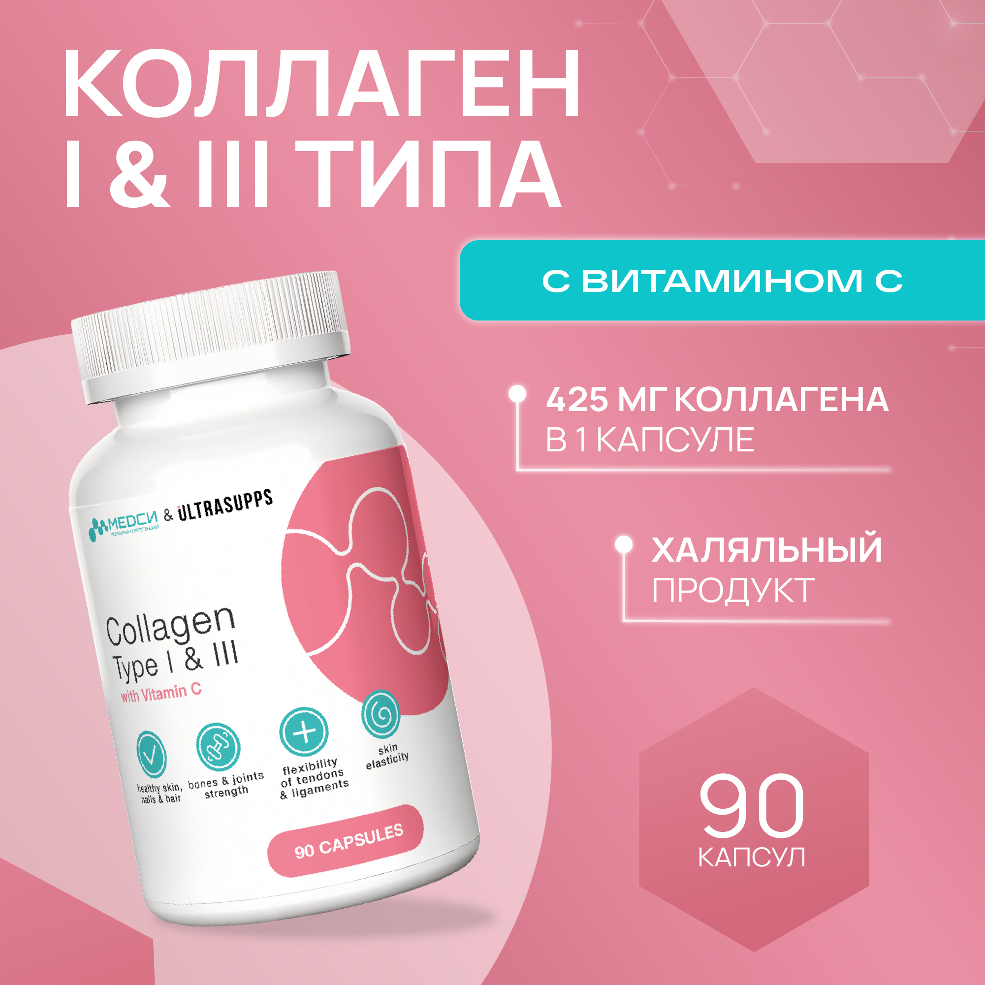 МЕДСИ Ультрасаппс Коллаген I и III типа 90 капсул