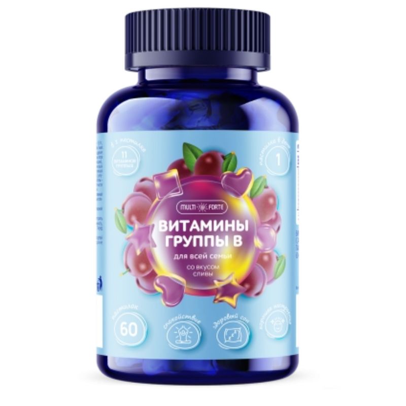 MultiForte Мульти-В пастилки мармеладные жевательные слива №60