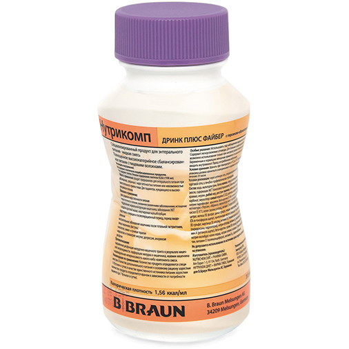 Нутрикомп Дринк Плюс Файбер— это полноценная высокоэнергетическая (1,5 ккал/мл) смесь с пищевыми волокнам и МСТ, без глютена, с крайне низким содержанием лактозы.