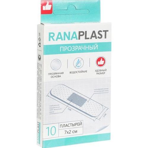 - Пластырь Ранапласт Pharmadoct Водостойкий на полимерной основе прозрачный 7х2см №10