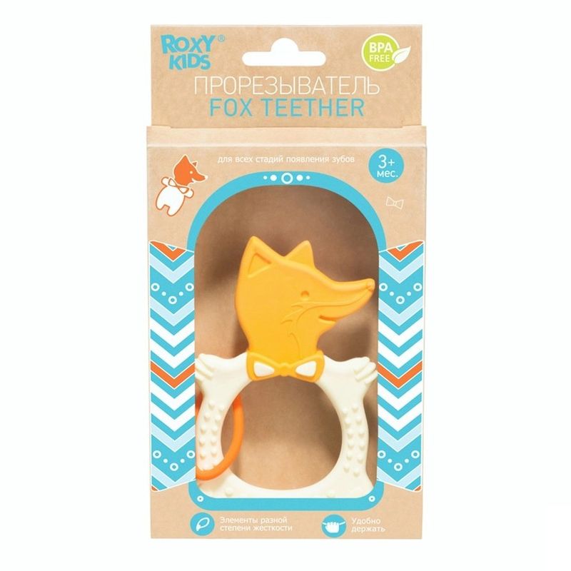 Прорезыватель для зубов FOX TEETHER от ROXY-KIDS подходит для всех стадий прорезывания зубов у малышей.