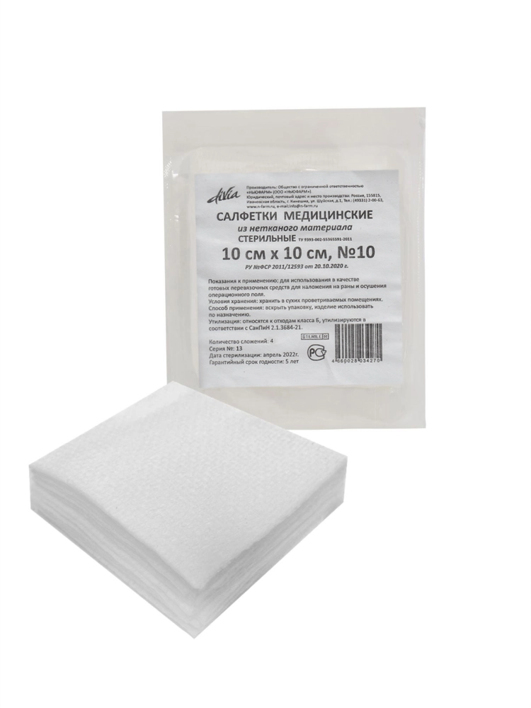 - Салфетки стерильные из нетканого материала 4 сложения 10х10см N10 Divia