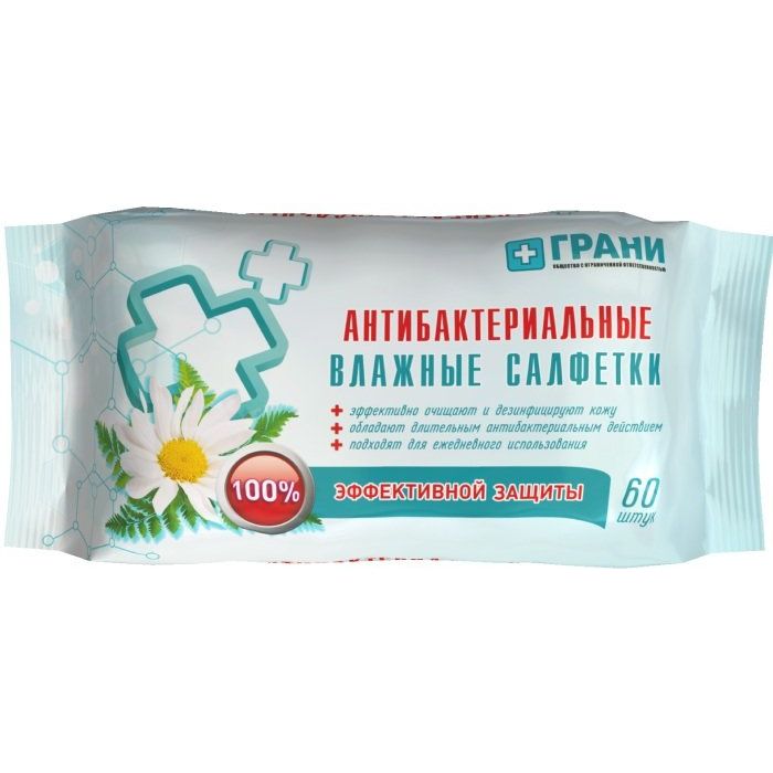 - Салфетки влажные с антибактериальным эффектом N60 Грани