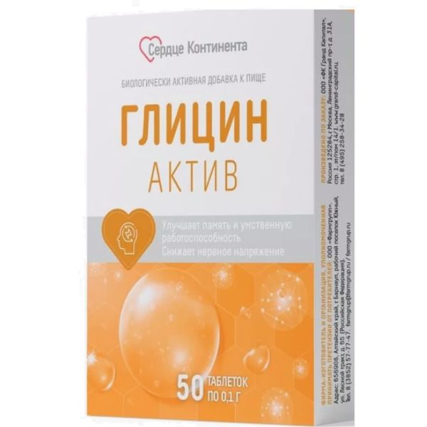 Сердце Континента Глицин-Актив таблетки 0,1г №50
