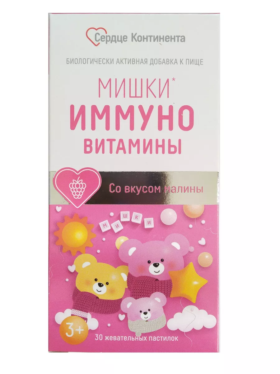 Сердце Континента Мишки Иммуно пастилки жевательные малина №30