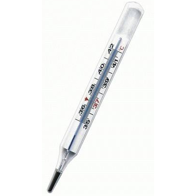 ВНИМАНИЕ! Термометр содержит ртуть! Ртуть вне термометра - опасна! Разрыв столбика ртути в капиллярной трубке над резервуаром со ртутью не является дефектом, он типичен для термометров с максимальным устройством.
