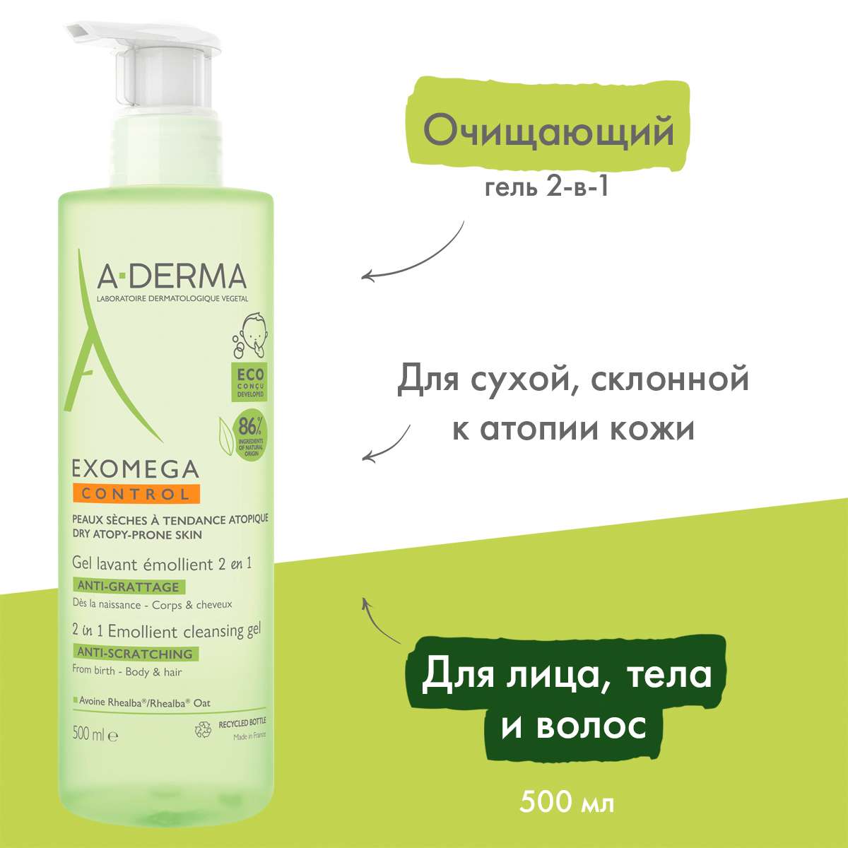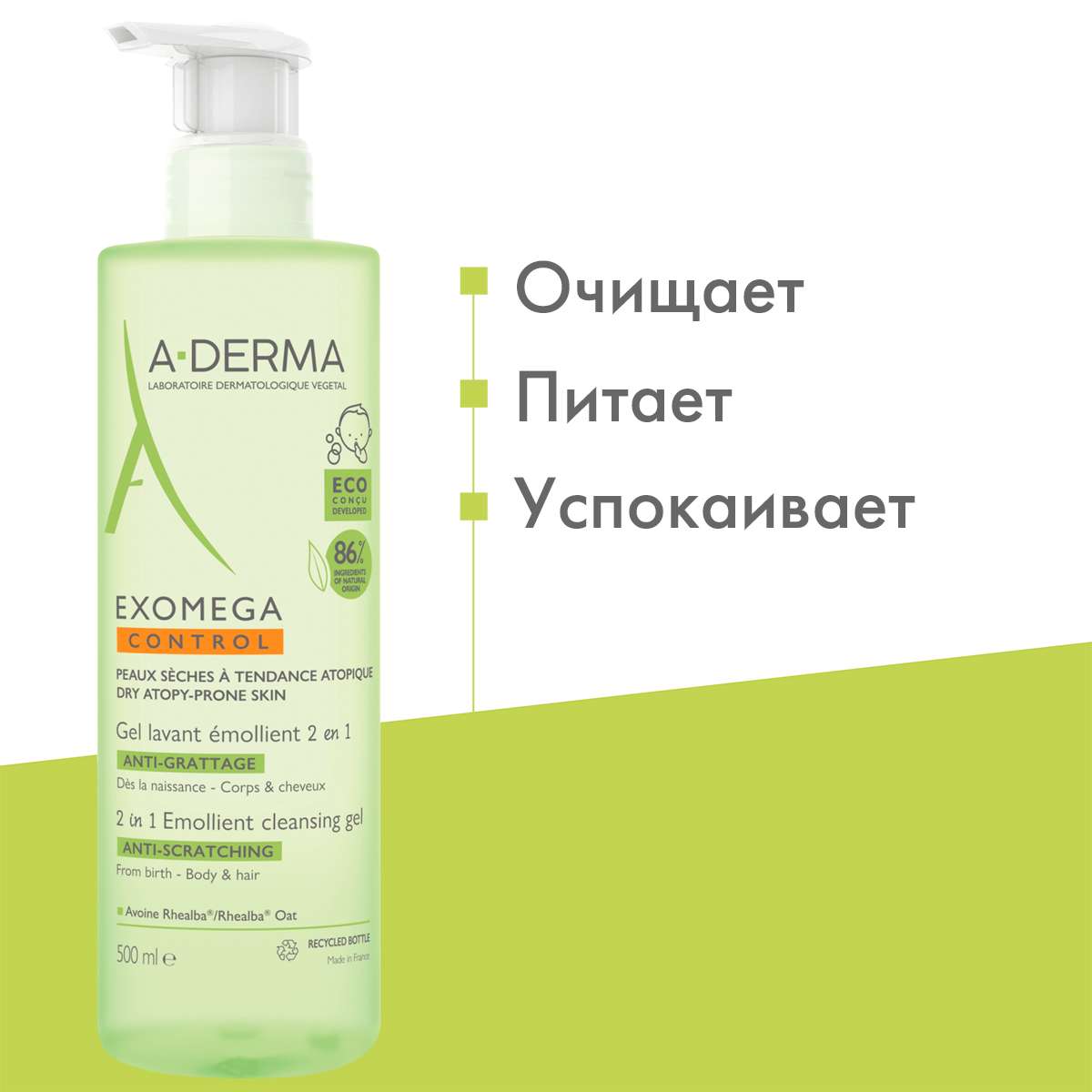 A-Derma ЭКЗОМЕГА Control Смягчающий очищающий гель 2 в 1 500 мл