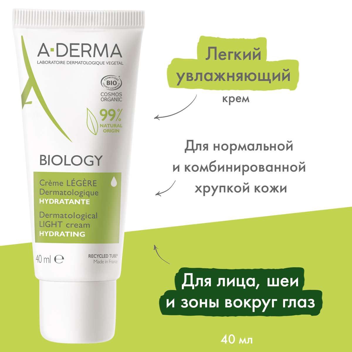 - A-Derma Biology Лёгкий увлажняющий дерматологический крем для хрупкой кожи 40мл
