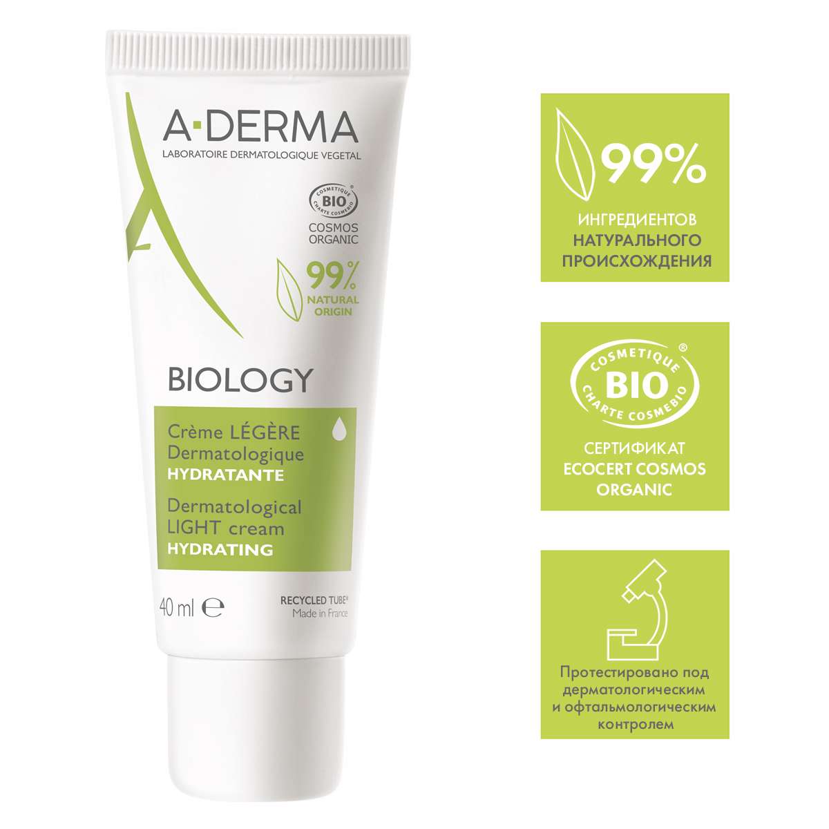 A-Derma Biology Лёгкий увлажняющий дерматологический крем для хрупкой кожи 40мл