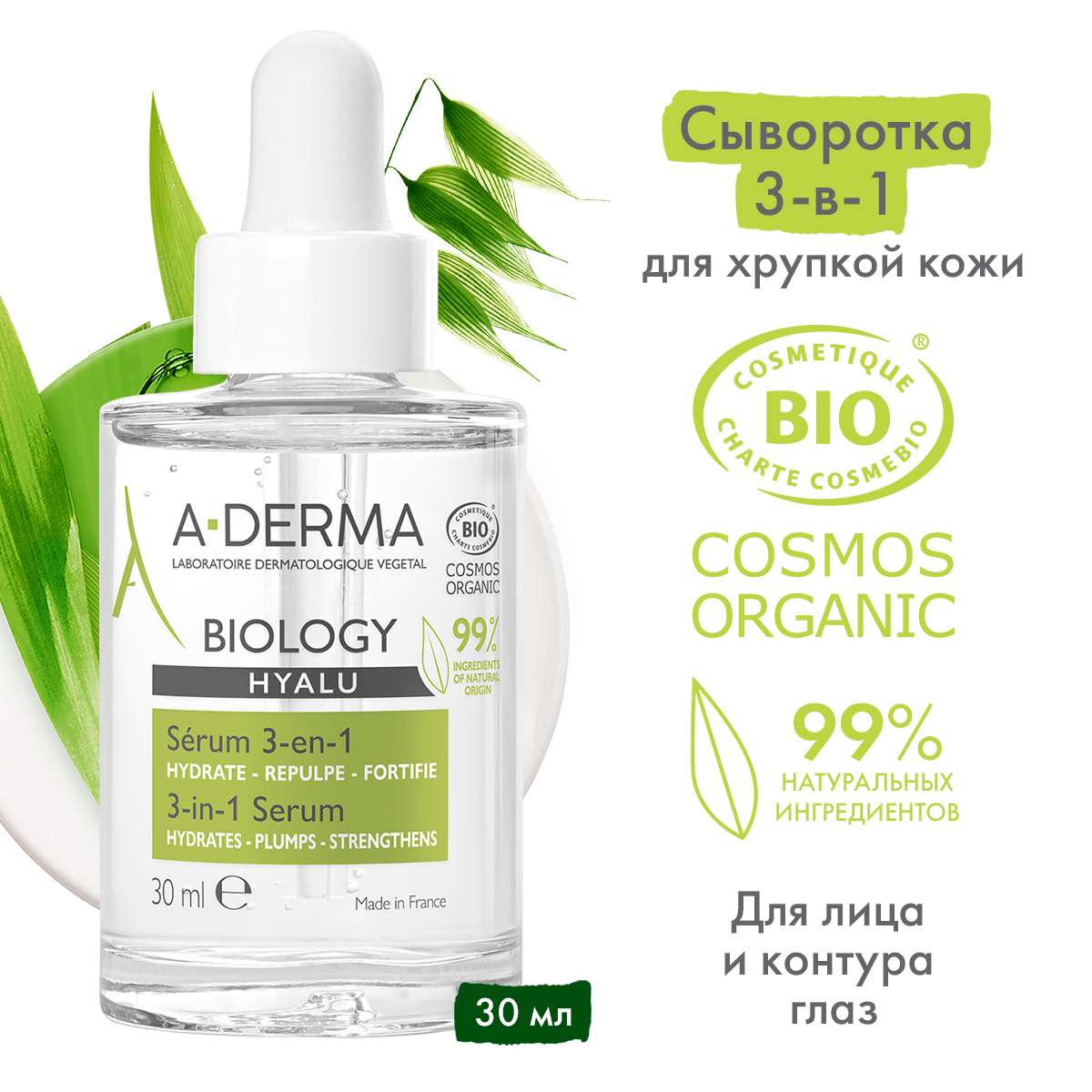 Aderma Biology Сыворотка 3в1 с гиалуроновой кислотой 30мл