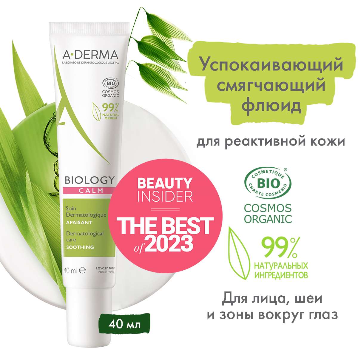 A-Derma Biology Успокаивающий смягчающий дерматологический флюид для хрупкой кожи 40мл
