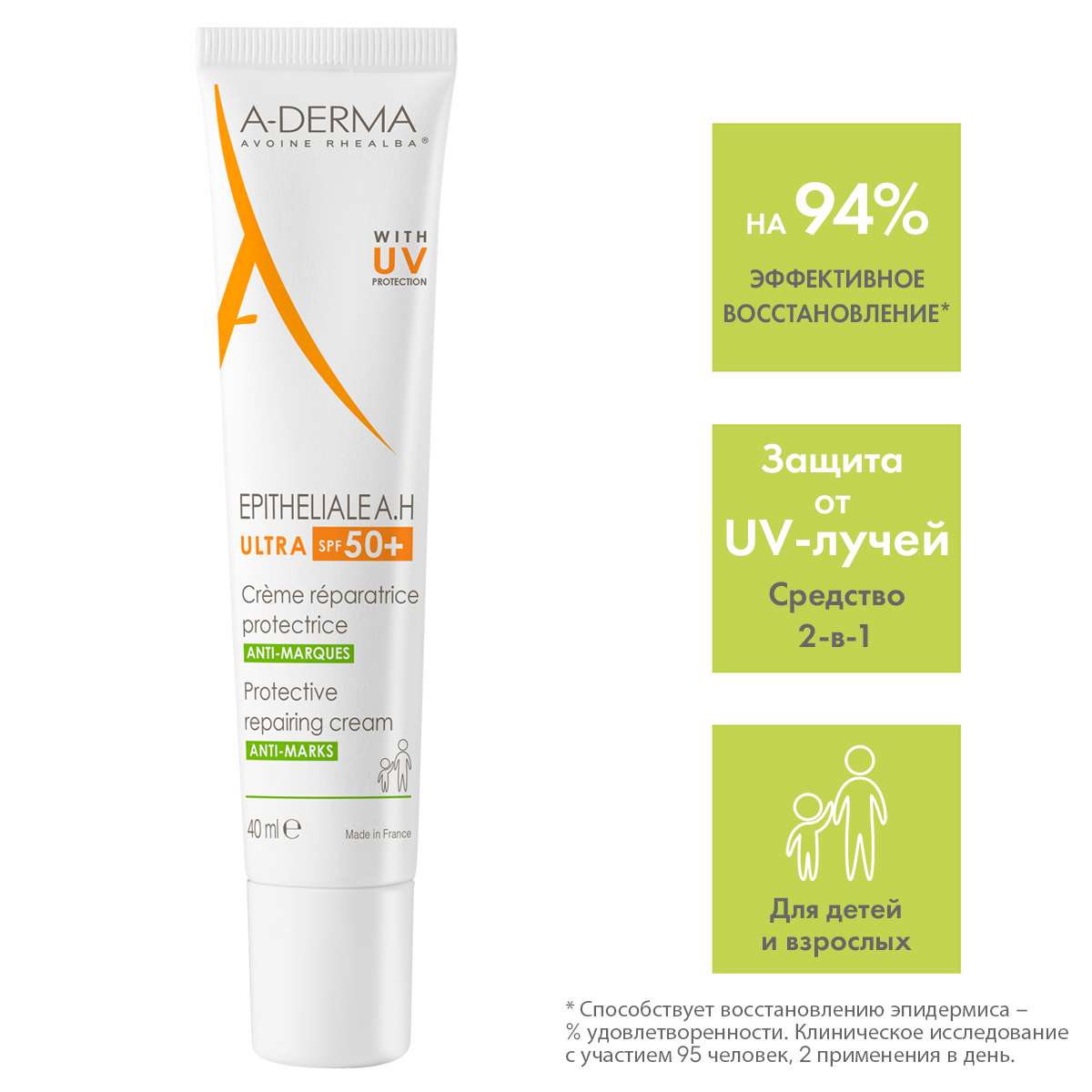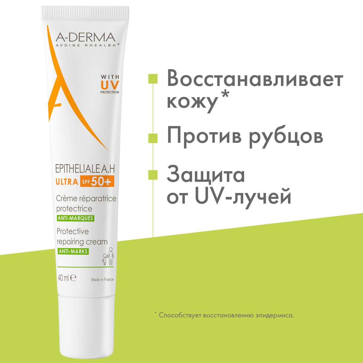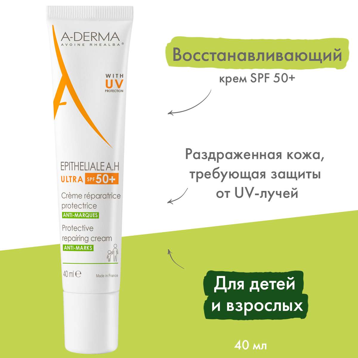 Aderma Epitheliale A.H. Ultra Защитный восстанавливающий крем SPF50+ 40мл