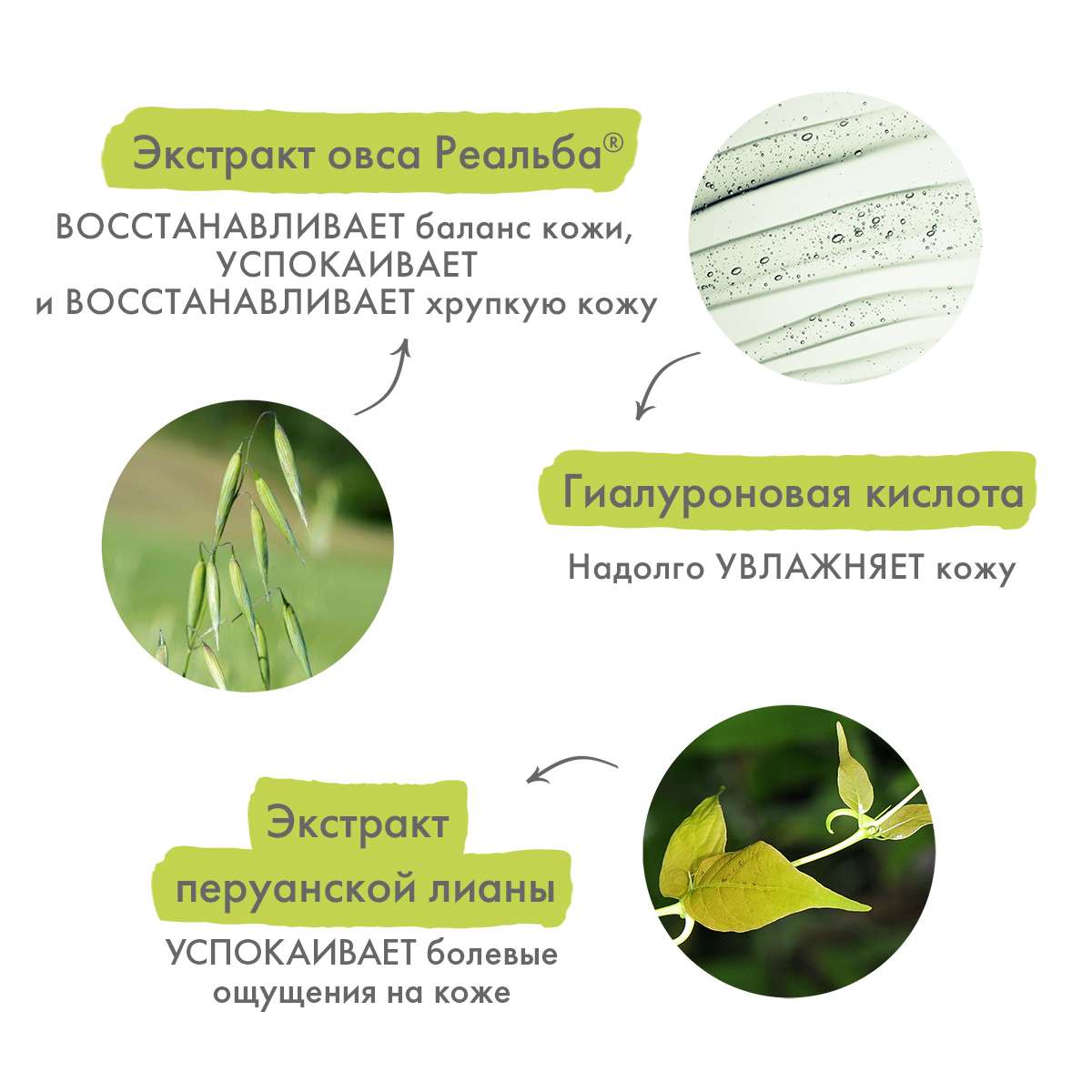 экстракт перуанской лианы — обладает выраженным обезболивающим эффектом, способствует быстрому восстановлению кожного покрова.