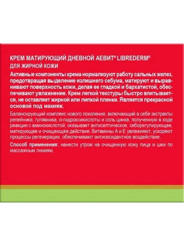 - Aevit by Librederm крем матирующий дневной 50 мл