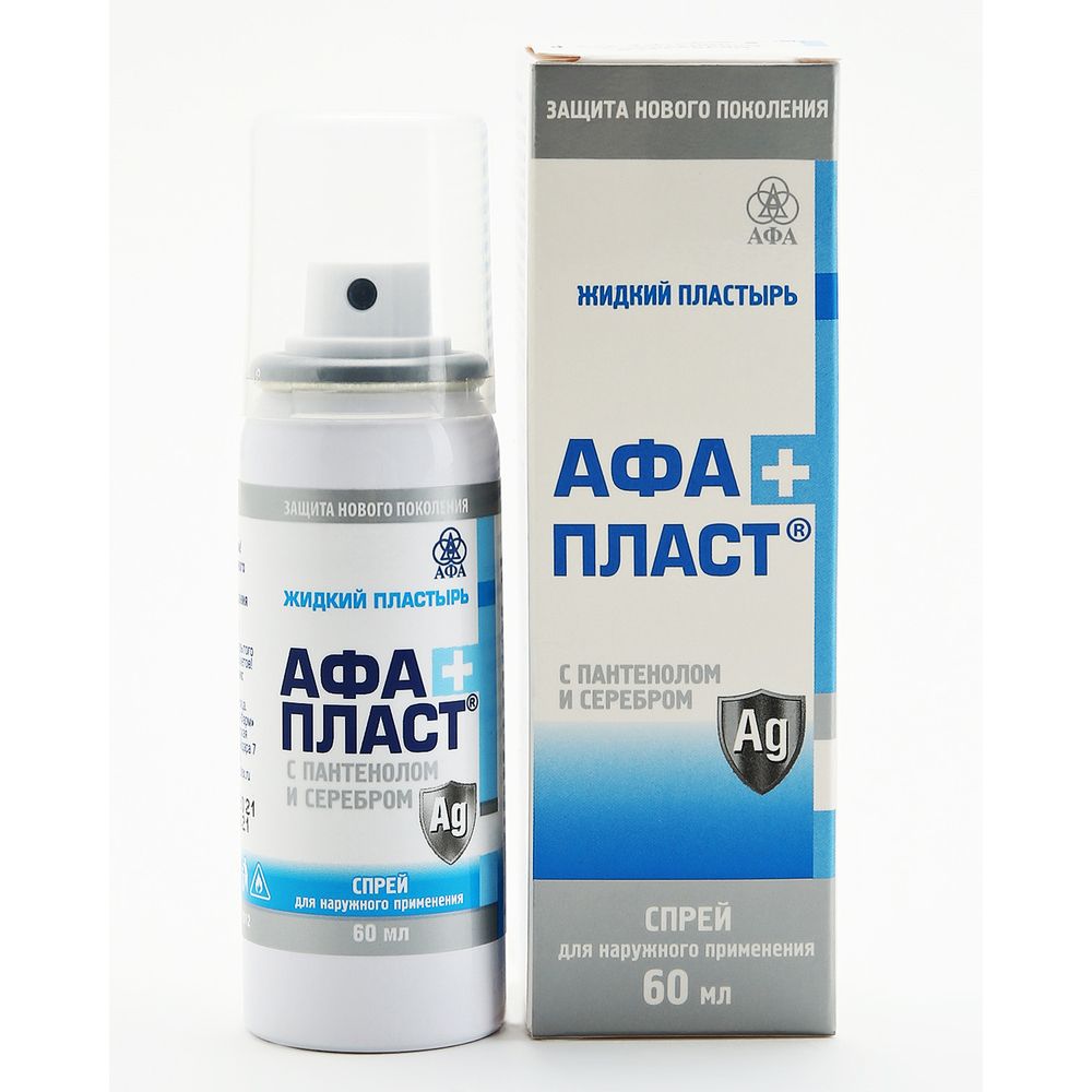 - Афапласт Плюс с пантенолом и серебром жидкий пластырь спрей 60мл
