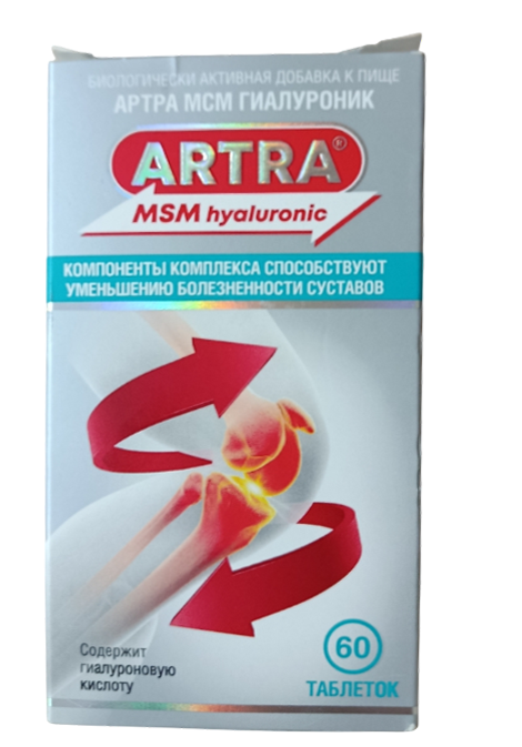 Биологически активная добавка к пище. Артра МСМ содержит высокие концентрации глюкозамина, хондроитина, гиалуроновой кислоты и метилсульфонилметана (МСМ), которые в комбинации проявляют синергизм, дополняя и усиливая эффекты друг друга.