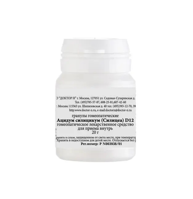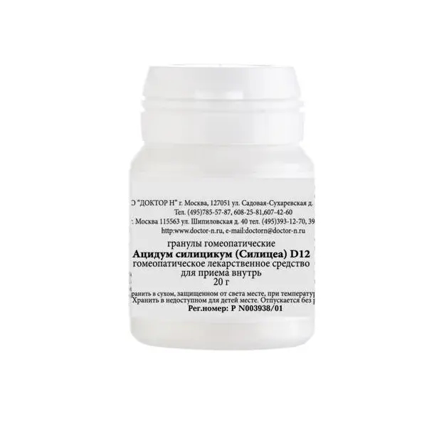 - Ацидум Силицикум Силицеа D12 Гомеопатический монокомпонентный препарат гранулы гомеопатические 20г
