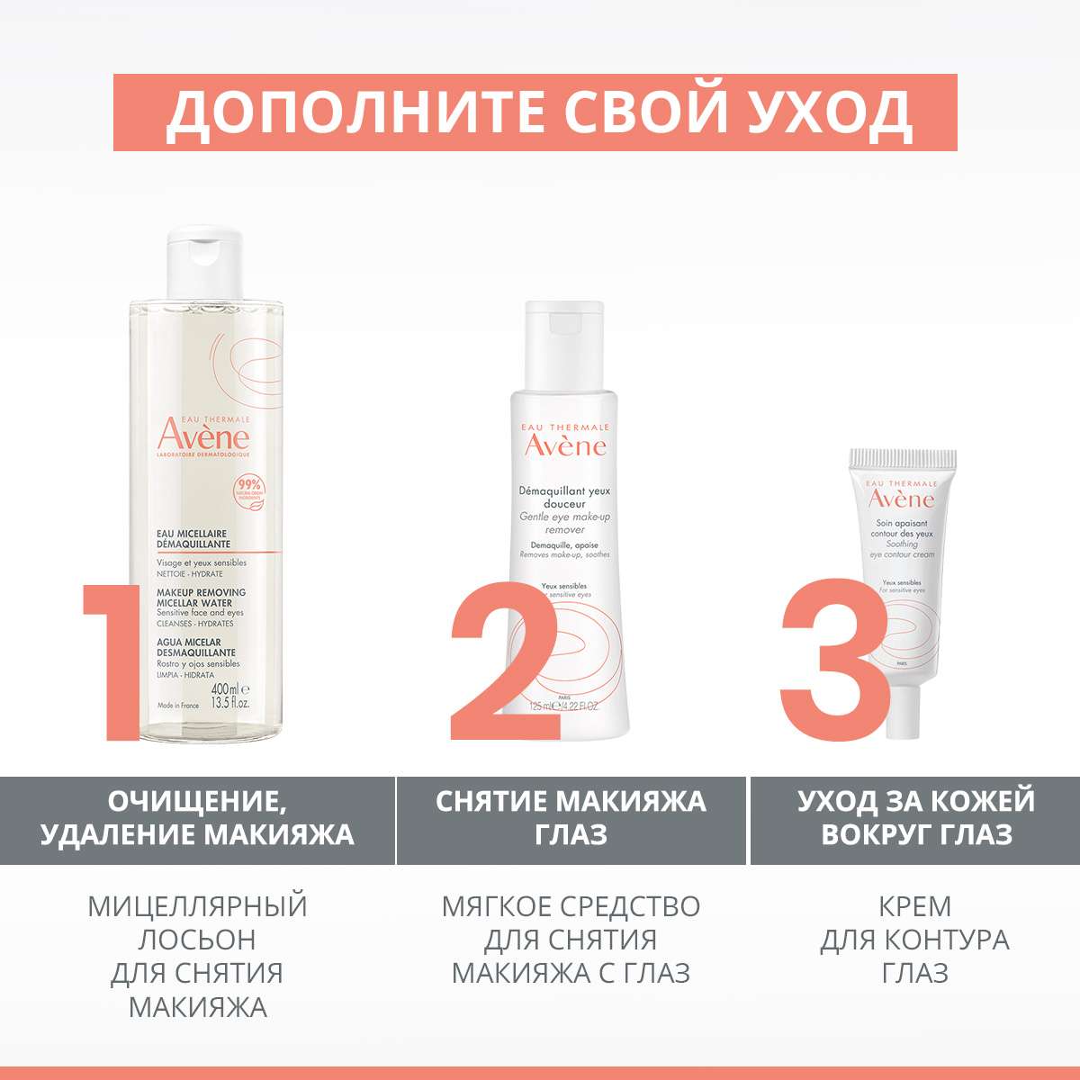 Нанести немного средства на ватный диск. Аккуратно удалить макияж с глаз. Использовать Термальную воду Авен.Наличие и цена товара в аптеках