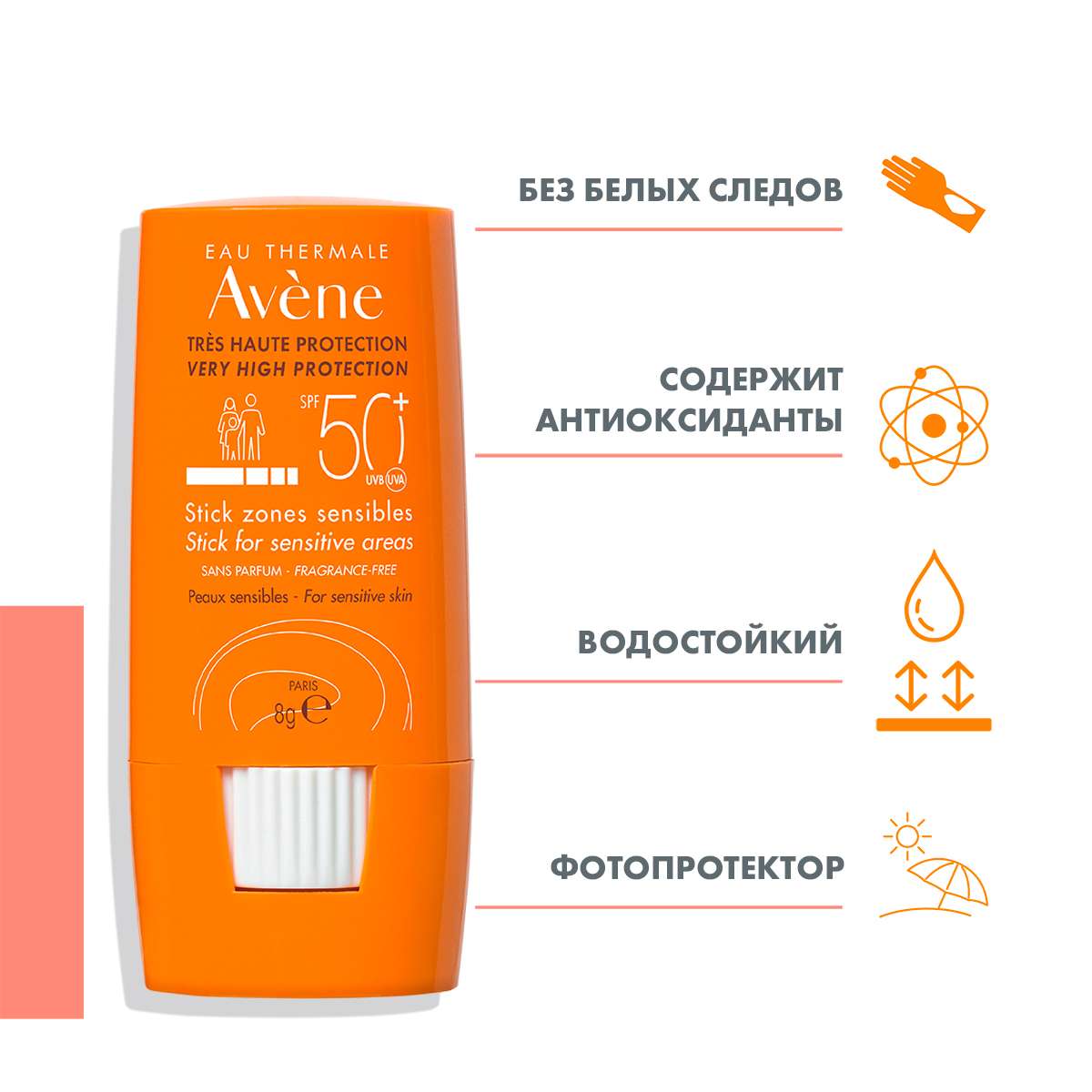 Avene (Авен) Солнцезащитный стик SPF 50+ для чувствительных зон 8 г