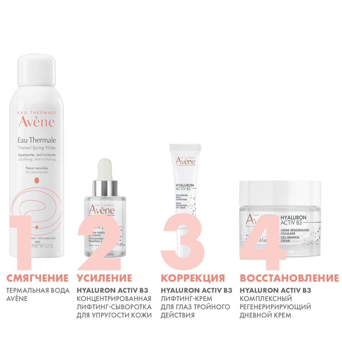 avene aqua, niacinamide, glycerin, pentylene glycol, sodium hyaluronate, adenosine, citric acid, sodium benzoateДействие