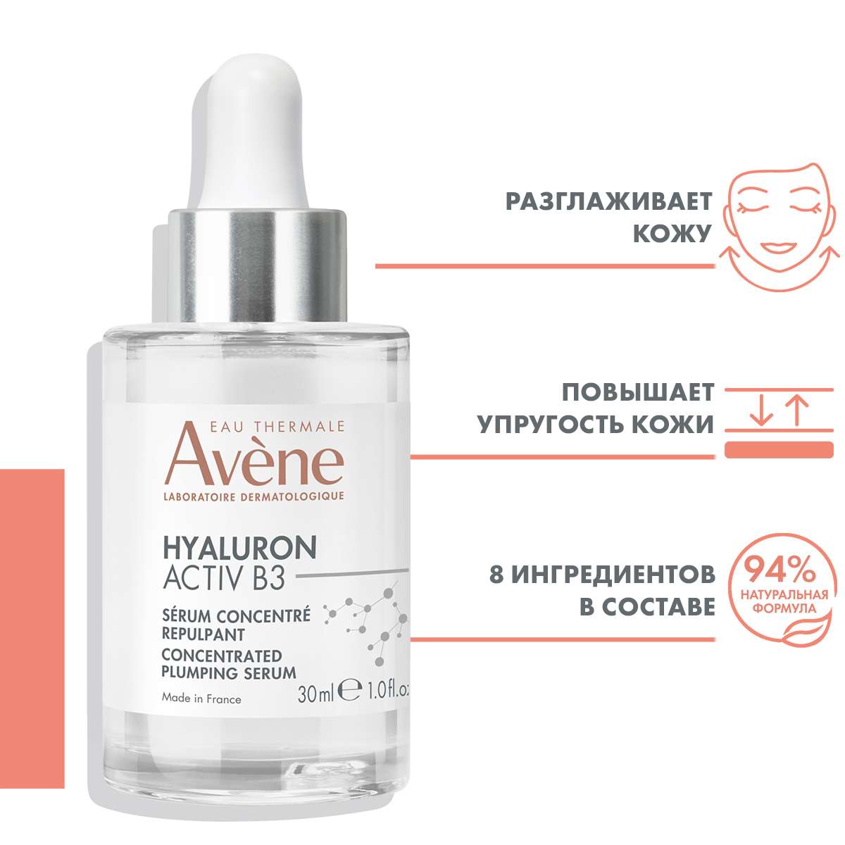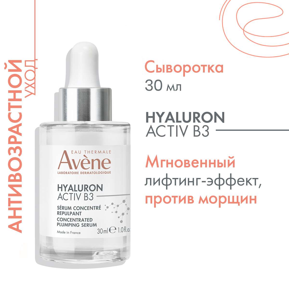 Avene Гиалурон Актив В3 Лифтинг-сыворотка концентрированная для кожи лица, шеи и зоны декольте 30мл