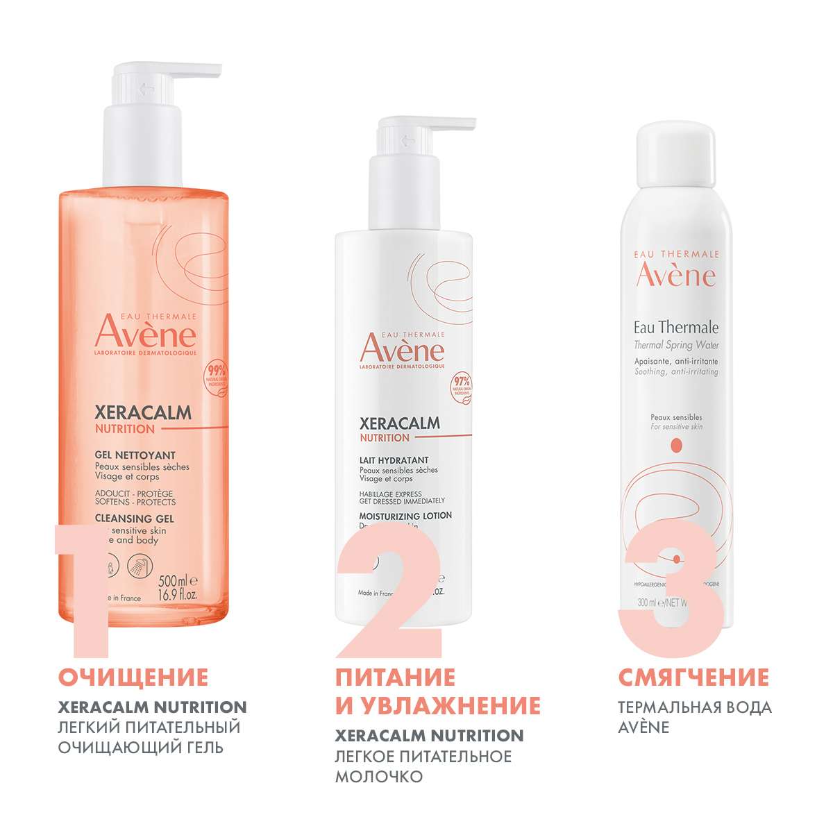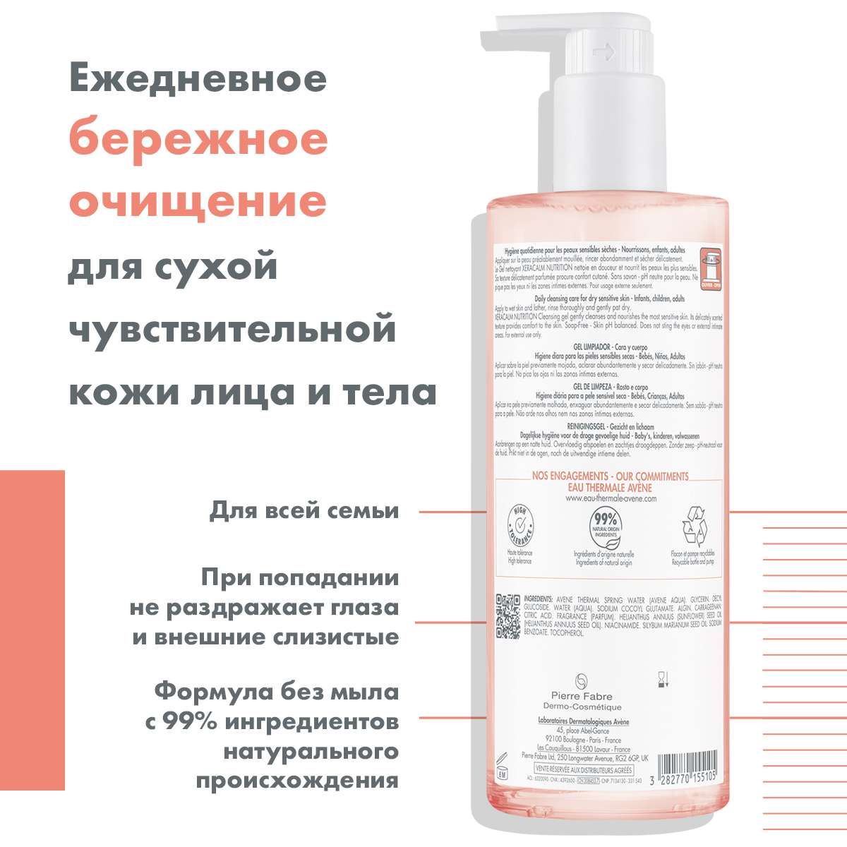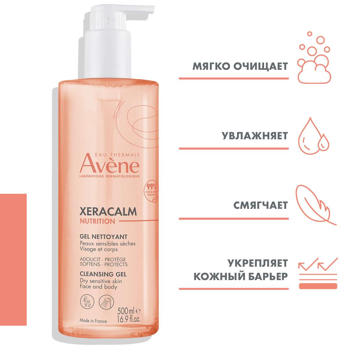 Avene КсераКалм Nutrition Легкий питательный очищающий гель 500мл