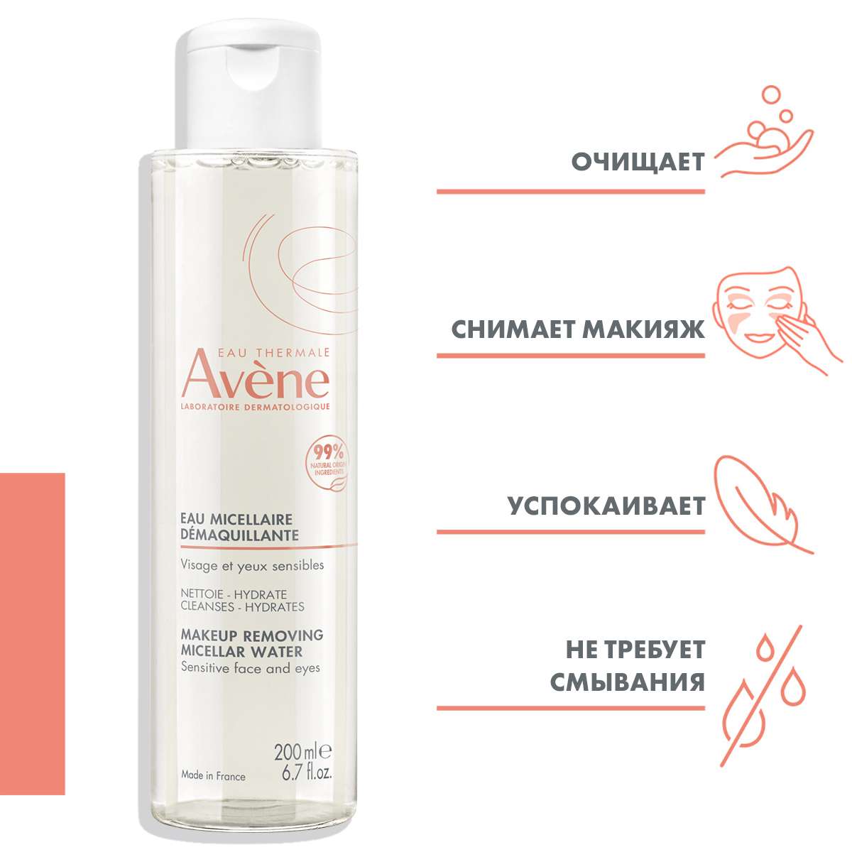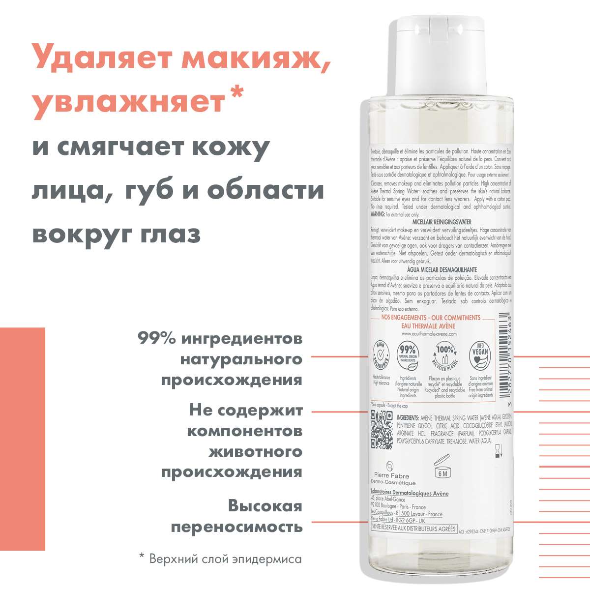 Высокая концентрация термальной водой Avène - успокаивает и сохраняет естественный баланс кожиСостав