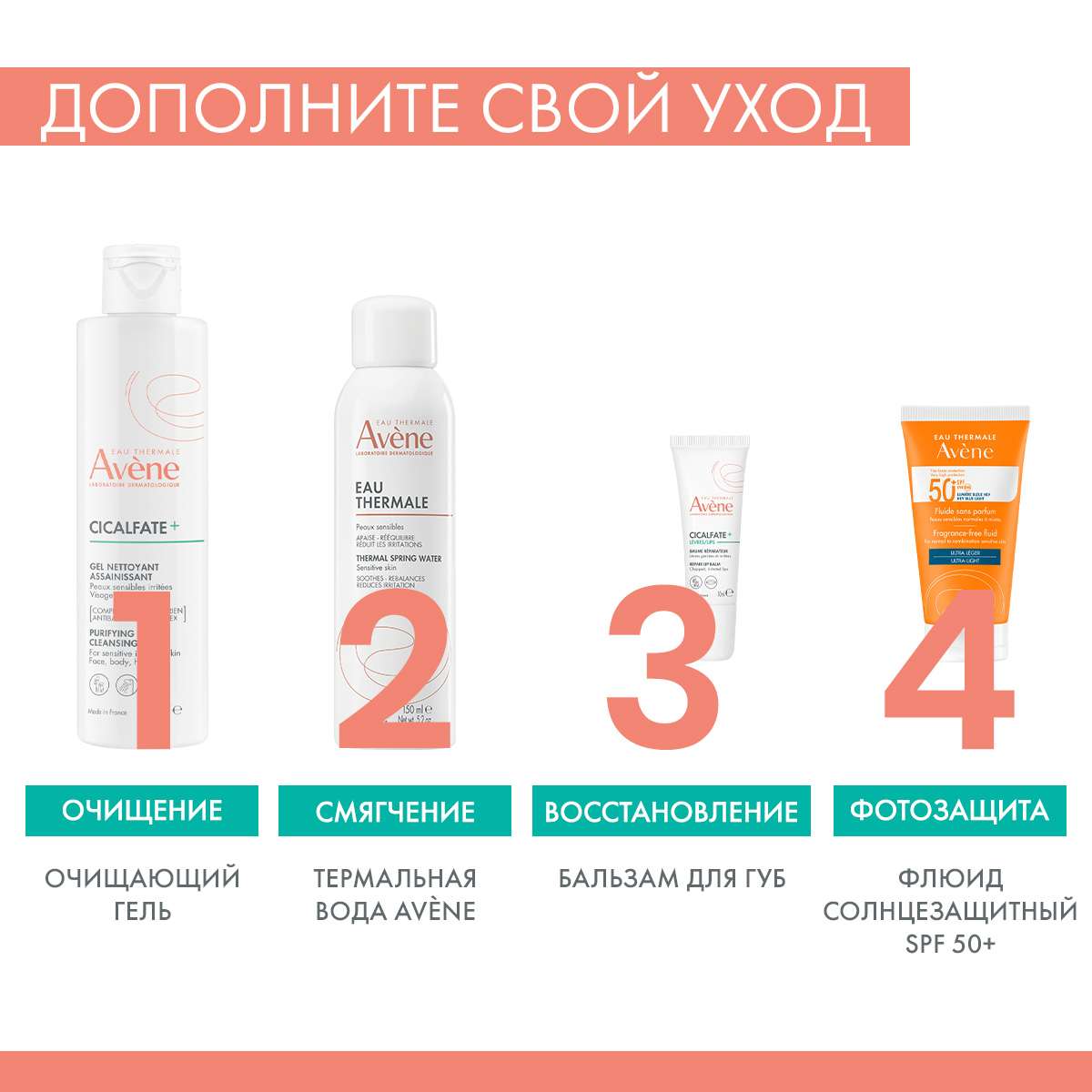 Активные вещества: Glycerin, Ricinus Communis (Castor) Seed Oil (Ricinus Communis Seed Oil), Avene Thermal Spring Water (Avene Aqua), Beeswax (Cera Alba), Caprylic/Capric Triglyceride, Mineral Oil (Paraffinum Liquidum), Bisdiglyceryl Polyacyladipate-2, Isopropyl Palmitate, Hydrogenated Castor Oil, Hydrogenated Polyisobutene, PEG-45/Dodecyl Glycol Copolymer, Aluminium Sucrose Octasulfate, Zinc Oxide, Copper Sulfate, Magnesium Sulfate, Zinc Sulfate.