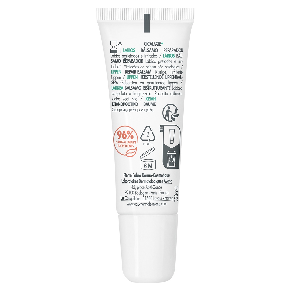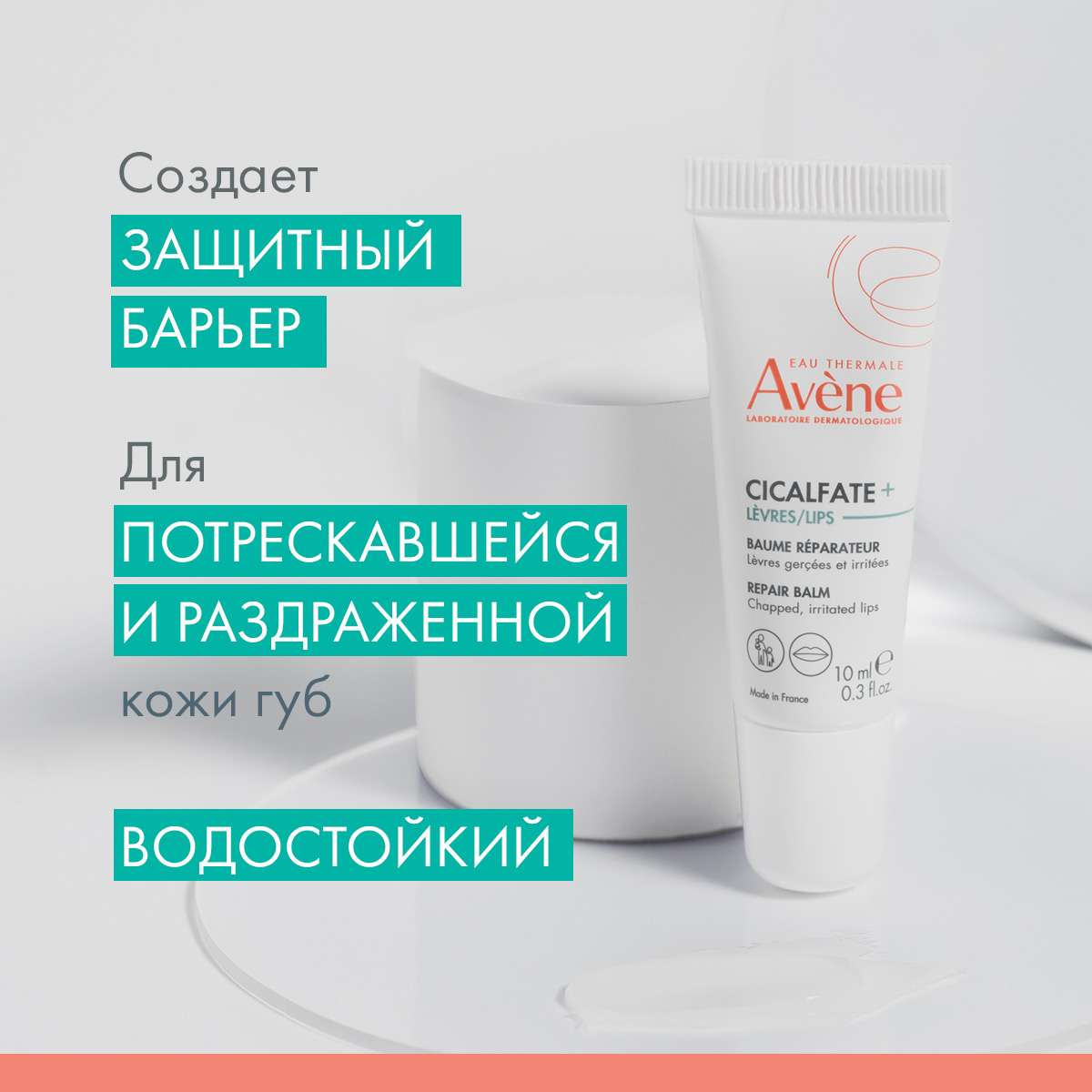 Активные вещества: GLYCERIN, RICINUS COMMUNIS SEED OIL, AVENE AQUA, CERA ALBA, CAPRYLIC/CAPRIC TRIGLYCERIDE, PARAFFINUM LIQUIDUM, BIS-DIGLYCERYL POLYACRYLADIPATE-2, ISOPROPYL PALMITATE, HYDROGENATED CASTOR OIL, HYDROGENATED POLYISOBUTENE, PEG-45/DODECYL GLYCOL COPOLYMER, ALUMINUM SUCROSE OCTASULFATE, ZINC OXIDE, MAGNESIUM SULFATE, ZINC SULFATE.