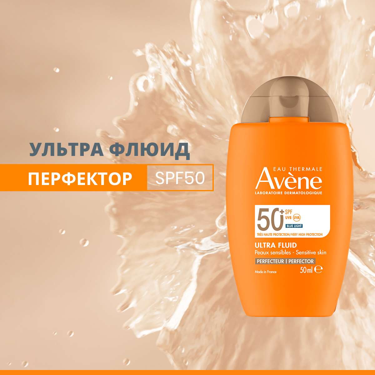 Avene Солнцезащитный ультралегкий флюид-перфектор для лица SPF50+ 50мл