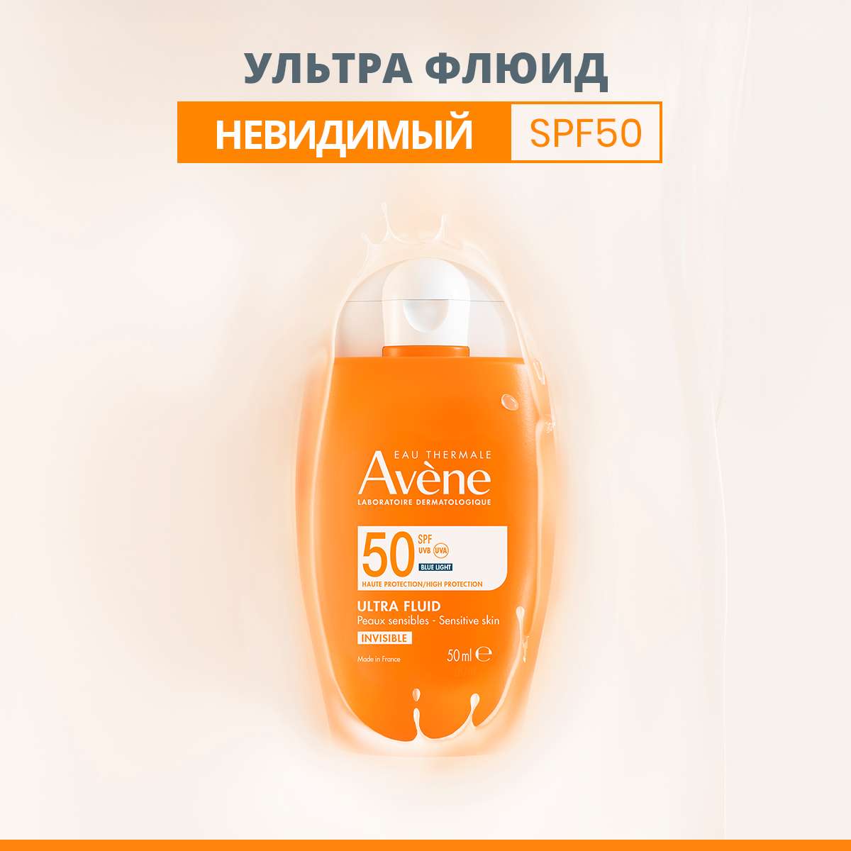 Avene Солнцезащитный ультралегкий невидимый флюид для лица SPF50 50мл