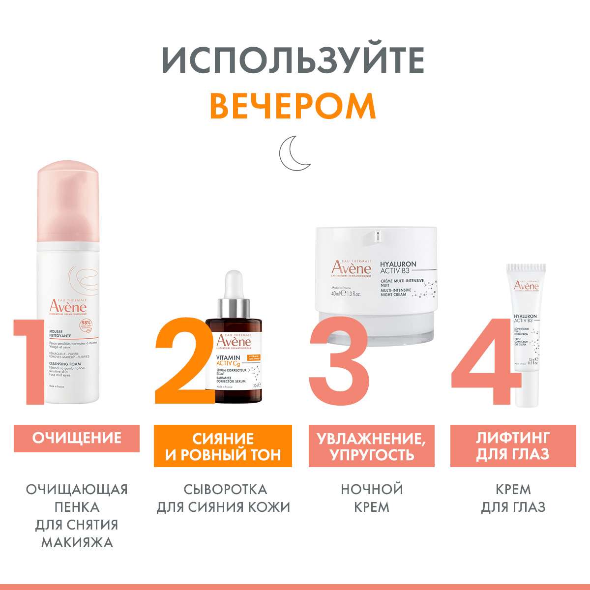 Активные вещества: avene thermal spring water (avene aqua), caprylic/ capric triglyceride, glycerin, niacinamide, carthamus tinctorius (safflower) seed oil (carthamus tinctorius seed oil), butyrospermum parkii (shea) butter (butyrospermum parkii butter), glycol palmitate, ascorbyl glucoside, arachidyl alcohol, cetearyl alcohol, glyceryl stearate, arachidyl glucoside, behenyl alcohol, caprylyl glycol, cetearyl glucoside, citric acid, fragrance (parfum), helianthus annuus (sunflower) seed oil (helianthus annuus seed oil), sodium benzoate, sodium citrate, sodium hyaluronate, sodium hydroxide, sodium stearoyl glutamate, tocopherol, xanthan gum.