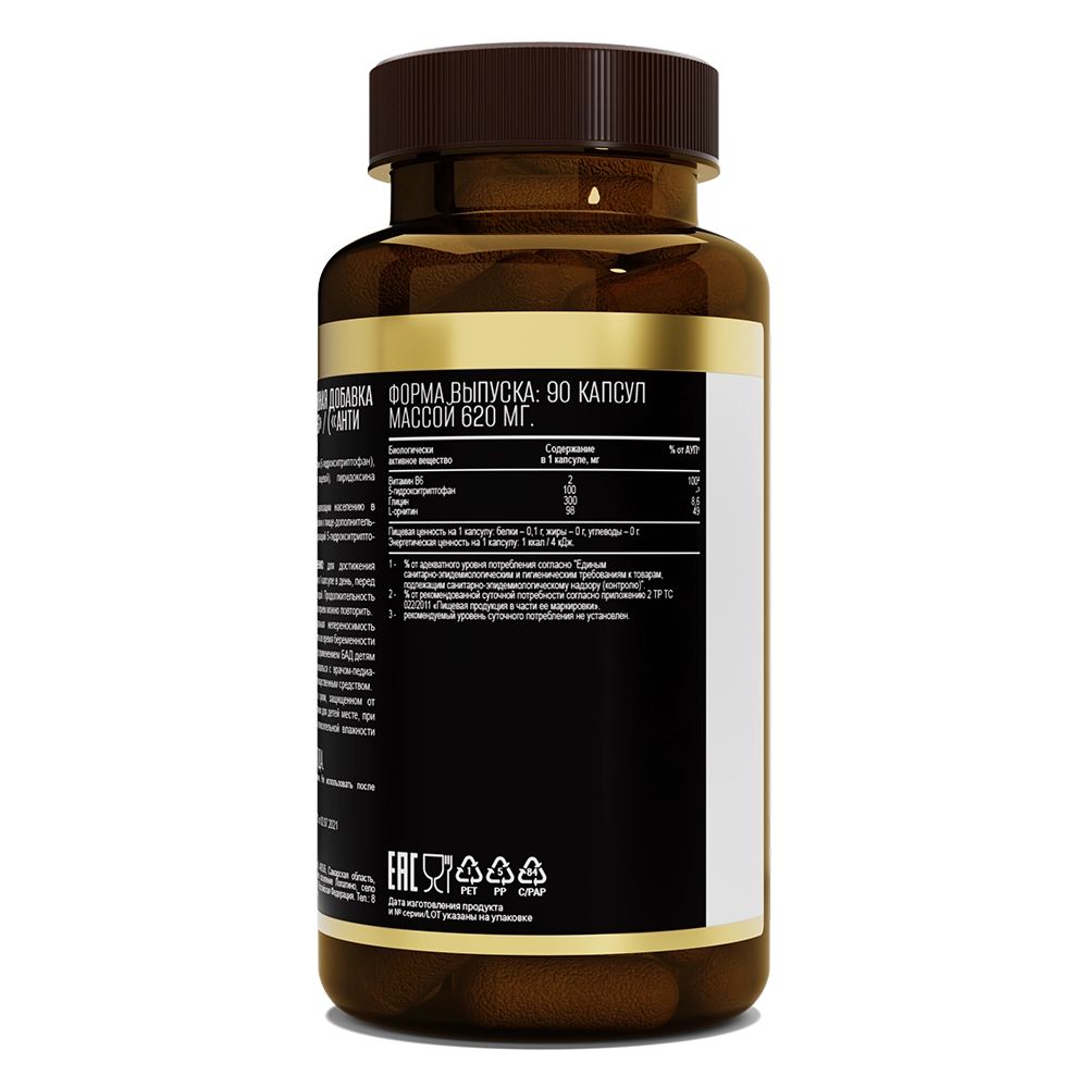 глицин, экстракт гриффонии (5-гидрокситриптофан), L-орнитин, капсула (желатин пищевой), пиридоксина гидрохлорид (витамин В6).Действие
