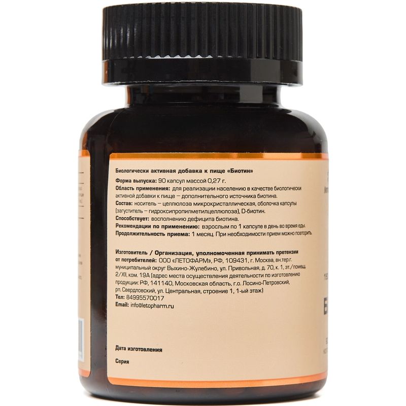 Активные вещества:носитель - целлюлоза микрокристаллическая, оболочка капсулы (загуститель - гидроксипропилметилцеллюлоза), D-биотин.