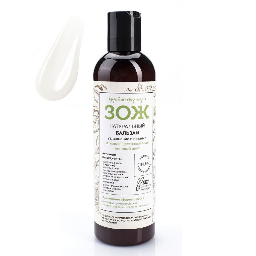 - Botavikos ЗОЖ Бальзам натуральный для волос Увлажнение и питание на основе цветочной воды Липовый цвет для всех типов волос 250мл