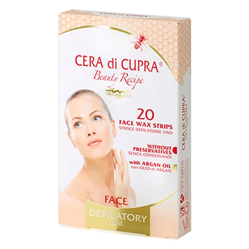 CERA DI CUPRA ПОЛОСКИ ВОСКОВЫЕ ДЛЯ ДЕПИЛЯЦИИ ЛИЦА (Face wax strips) - картонная коробка с восковыми полосками и салфетками для завершения процедуры депиляции
